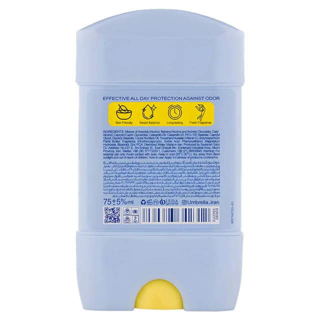 مام دئودورانت زنانه وایت اسموت آمبرلا یک مام بسیار با کیفیت است. این محصول یک دئودورانت است که ماندگاری طولانی مدت دارد. فاقد هرگونه ترکیبات حساسیت زا است، بنابراین اگر دارای پوستی حساس هستید، با خیال راحت می توانید از این محصول استفاده کنید. این محصول علاوه بر ضد حساسیت بودن دارای خواص آنتی باکتریال است که ناحیه زیر بغل شما را همواره به دور از آلودگی نگه می دارد. این محصول دارای ترکیبات مرطوب کننده است که مانع از خشکی پوست زیر بغل شما می شود همچنین این محصول دارای رایحه خوش نارگیل است.